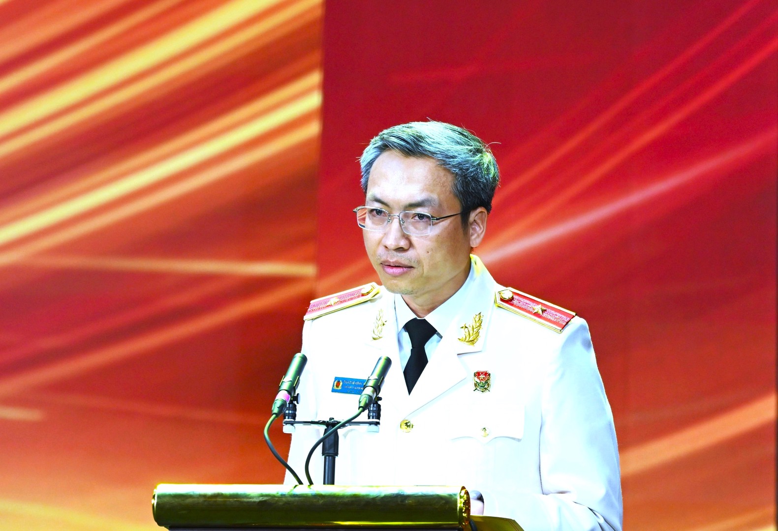 Trung tướng Đặng Hồng Đức, Ủy viên Trung ương Đảng, Thứ trưởng Bộ Công an trình bày diễn văn tại Lễ kỷ niệm.