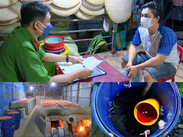 | Cảnh sát môi trường bắt quả tang cơ sở dùng phẩm màu không rõ nguồn gốc xuất xứ để nhuộm tôm khô |