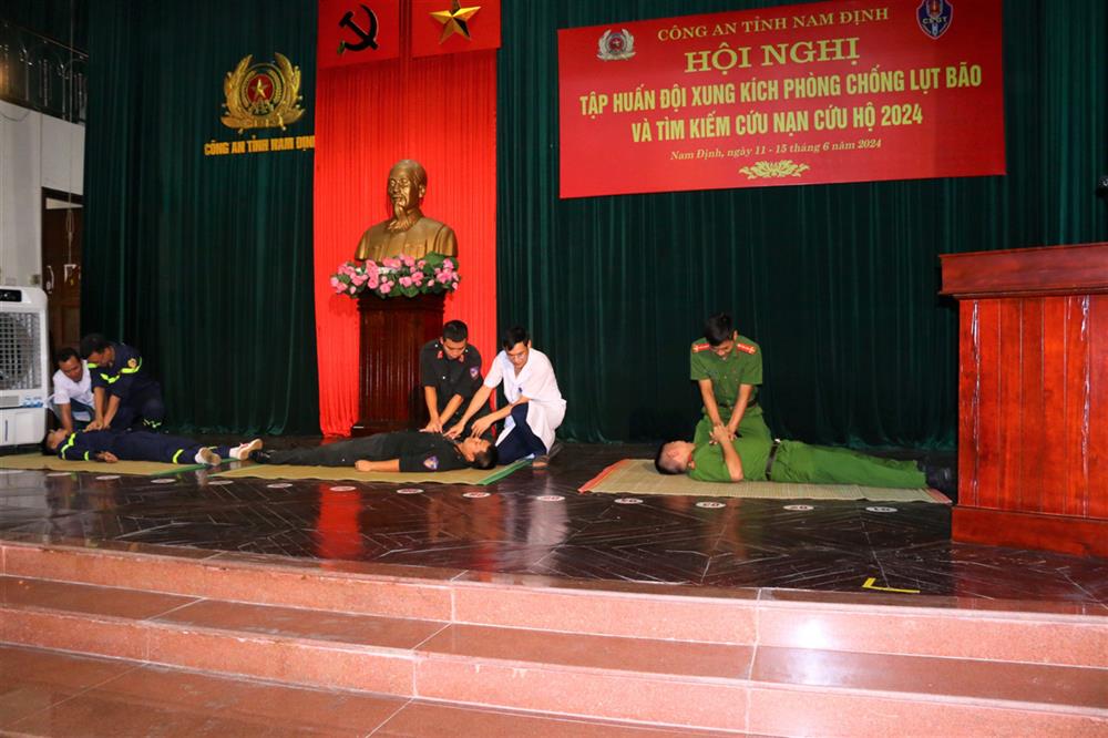 Trong thời gian 05 ngày (từ ngày 11/6 đến ngày 15/6/2024), 126 cán bộ, chiến sĩ thuộc các phòng nghiệp vụ Công an tỉnh Nam Định đã tập huấn kỹ năng ứng phó biến đổi khí hậu, phòng chống thiên tai, tìm kiếm cứu nạn và phòng thủ dân sự năm 2024.