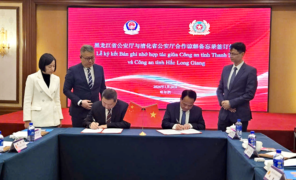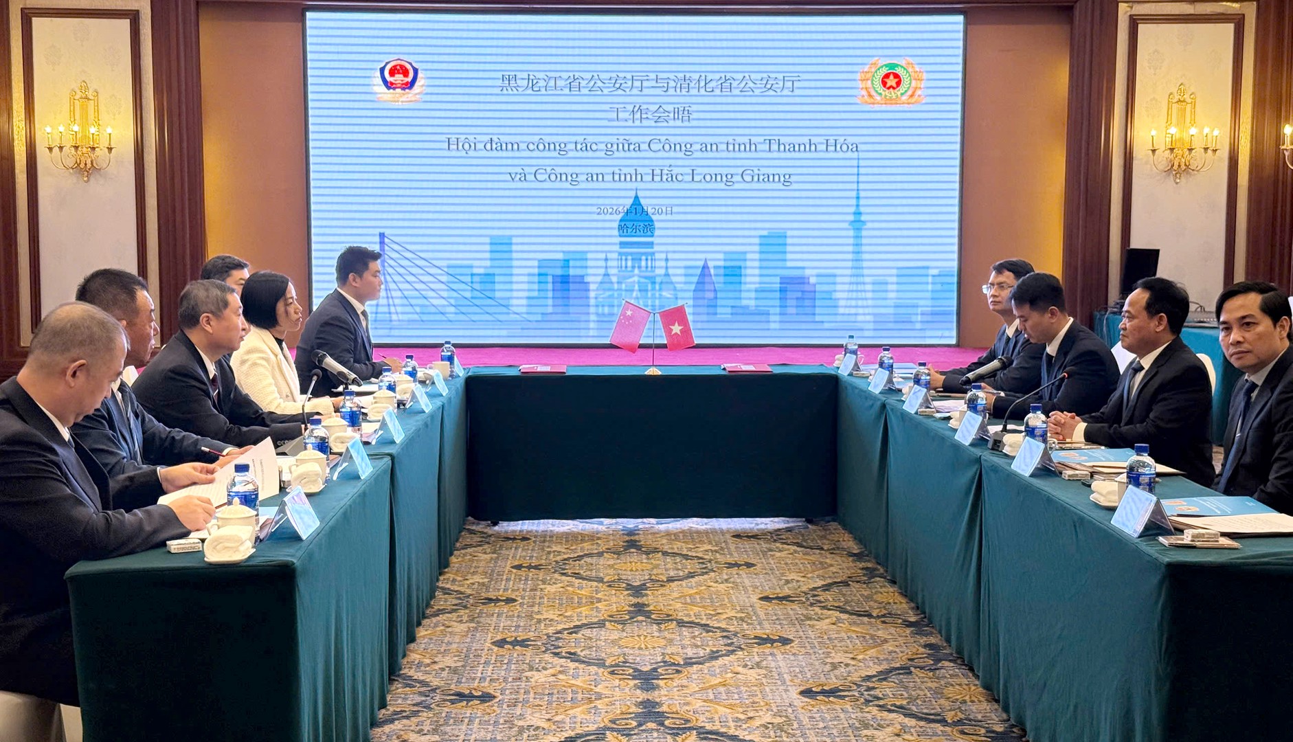 Thực hiện chương trình hợp tác giữa Bộ Công an Việt Nam và Bộ Công an Trung Quốc về tăng cường mối quan hệ hợp tác hữu nghị giữa Công an hai nước, trong các ngày từ 19/01 đến 23/01/2026, Đoàn công tác của Công an tỉnh Thanh Hóa do Đại tá Lê Ngọc Anh, Phó Giám đốc Công an tỉnh làm Trưởng đoàn đã đến thăm và hội đàm với Công an tỉnh Hắc Long Giang (Trung Quốc).