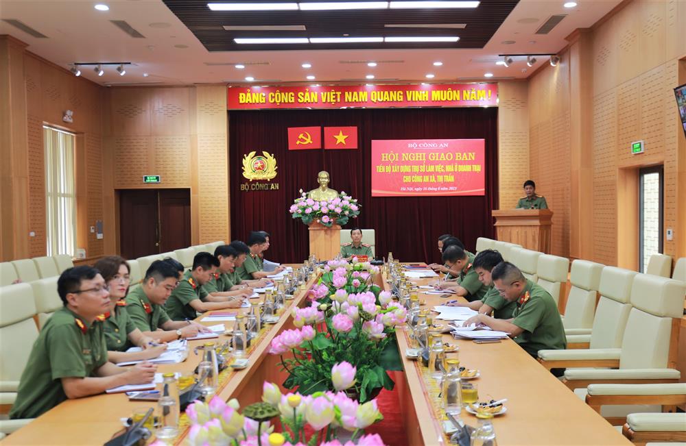 Sáng 16/8/2023, tại Hà Nội, Thiếu tướng Lê Văn Tuyến, Thứ trưởng Bộ Công an chủ trì Hội nghị trực tuyến giao ban tiến độ xây dựng trụ sở làm việc, nhà ở doanh trại cho Công an xã, thị trấn.
