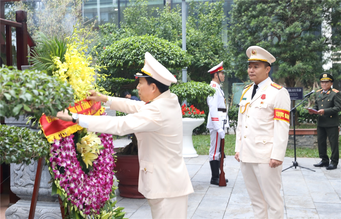 | Đoàn đại biểu Đảng ủy CATW, Bộ Công an dâng hoa, dâng hương tưởng niệm Chủ tịch Hồ Chí Minh. |