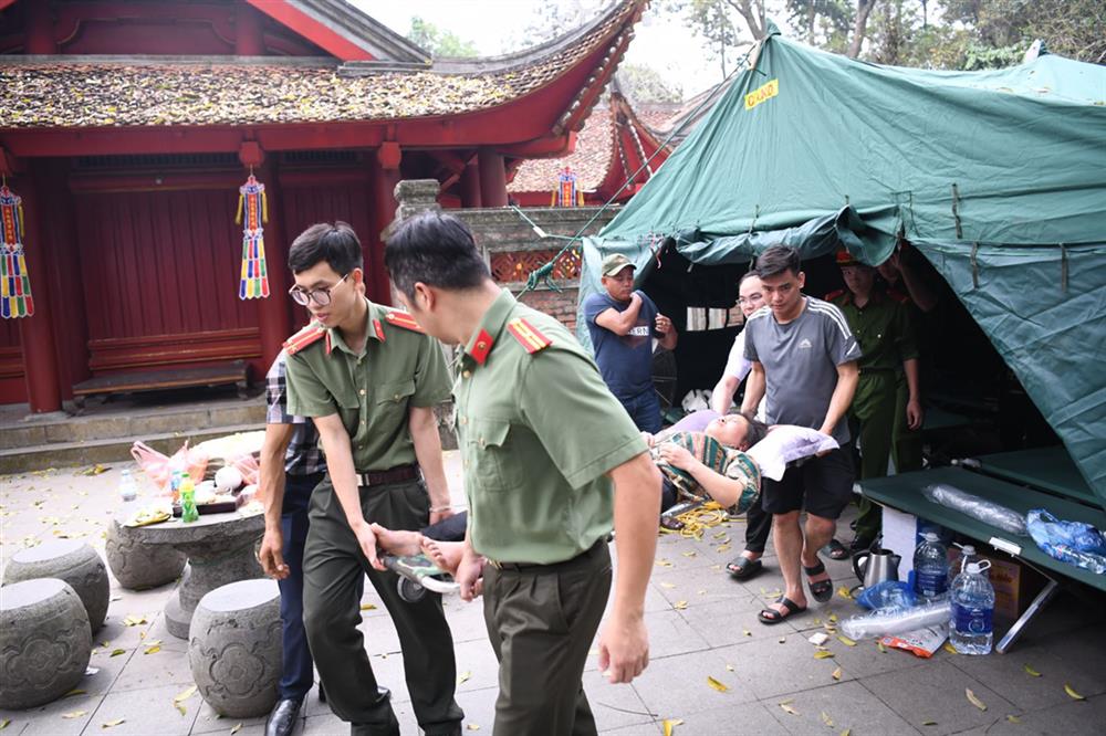 Ngay khi phát hiện, lực lượng Công an đang làm nhiệm vụ tại Đền Hạ đã phối hợp với người nhà chị Thuý tiến hành sơ cứu, sử dụng cáng đưa chị Thuý về lán của lực lượng Công an để chăm sóc. Đến khoảng 11h30’, sức khoẻ của chị Thuý đã dần ổn định, lực lượng Công an đã bàn giao cho lực lượng Y tế tiếp tục chăm sóc. Do được sơ cứu kịp thời, đến nay sức khoẻ của chị Thuý đã hoàn toàn bình phục.