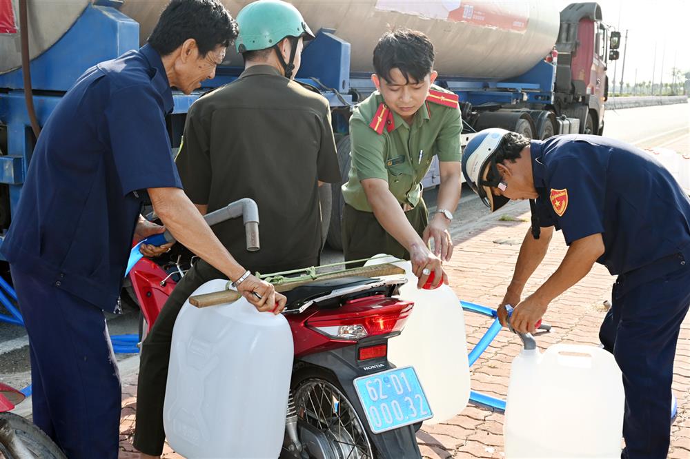 Hàng tuần, Công an huyện tổ chức cấp nước sạch trong 04 ngày/tuần, mỗi ngày cấp nước sạch tại một xã (xã Tân Tập, Đông Thạnh, Phước Vĩnh Đông, Phước Vĩnh Tây). Theo đó, mỗi hộ dân được cấp 180 lít nước sạch và 02 lốc nước uống đóng chai/lượt. Có 20 cán bộ chiến sỹ Công an huyện tổ chức vận chuyển nước sạch bằng xe máy đến tận nhà cho người dân. Từ đó, đảm bảo mọi người dân đều có nước sạch để sử dụng đến khi mưa về.