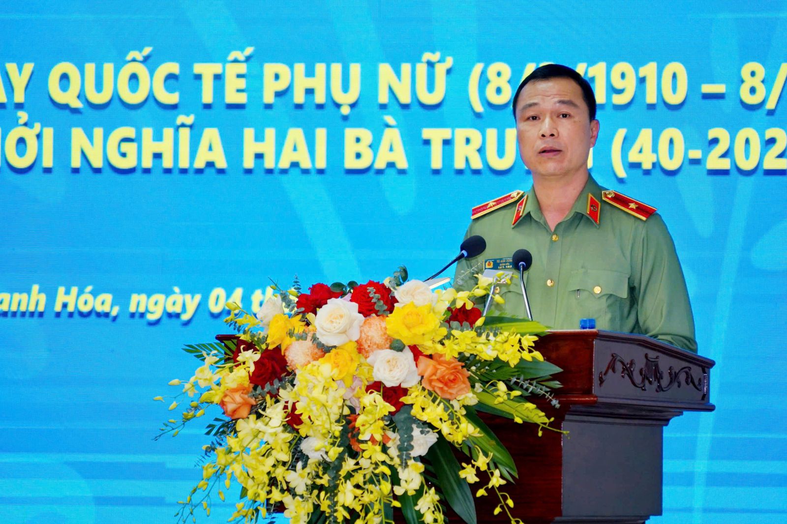 Phát biểu tại buổi gặp mặt, Thiếu tướng Tô Anh Dũng, Giám đốc Công an tỉnh chúc mừng và ghi nhận, biểu dương những đóng góp quan trọng của đội ngũ cán bộ nữ vào thành tích chung của Công an tỉnh thời gian qua. Đồng chí nhấn mạnh, phụ nữ Công an Thanh Hóa không chỉ hoàn thành tốt nhiệm vụ chuyên môn mà còn thể hiện rõ bản lĩnh chính trị, tinh thần trách nhiệm và phẩm chất nhân văn của người chiến sĩ Công an nhân dân.
