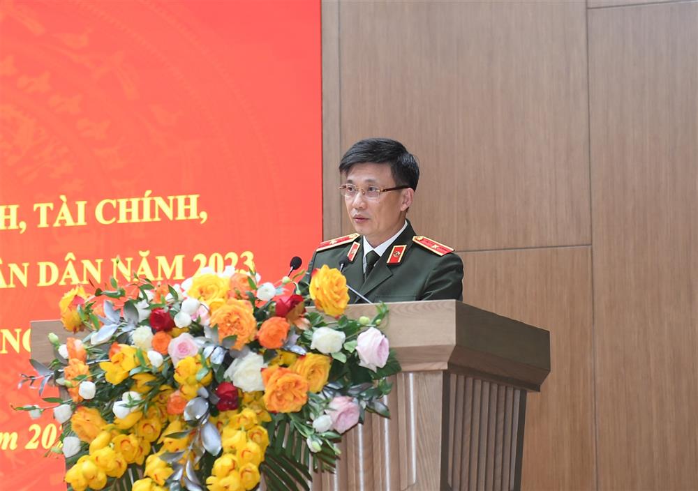 Báo cáo tóm tắt kết quả HCKT CAND năm 2023 và phương hướng, nhiệm vụ trọng tâm năm 2024, Đại tá Nguyễn Hồng Nguyên, Phó Chánh Văn phòng Bộ Công an nêu rõ: Năm 2023, Công an các đơn vị, địa phương đã khắc phục khó khăn, nêu cao tinh thần trách nhiệm, chủ động triển khai, bám sát chương trình, kế hoạch công tác của Bộ và đã hoàn thành nhiều công việc lớn, đột xuất theo chỉ đạo của Đảng ủy Công an Trung ương, lãnh đạo Bộ Công an trên lĩnh vực công tác kế hoạch, tài chính, HCKT. Công tác điều hành, chỉ đạo có nhiều đổi mới; các dự án, đề án triển khai nhanh chóng, cơ bản đảm bảo tiến độ, quy định về thủ tục; quy trình đầu tư. Công tác nghiên cứu, ứng dụng thành tựu khoa học, kỹ thuật và công nghệ đã chủ động từng bước tiếp cận những thành tựu mới và đẩy mạnh giải quyết những vấn đề thực tiễn công tác, chiến đấu đặt ra. Đặc biệt, đã đảm bảo tốt điều kiện về tài chính, HCKT, y tế cho toàn lực lượng Công an trong thực hiện các nhiệm vụ chính trị lớn được Đảng, Nhà nước giao...