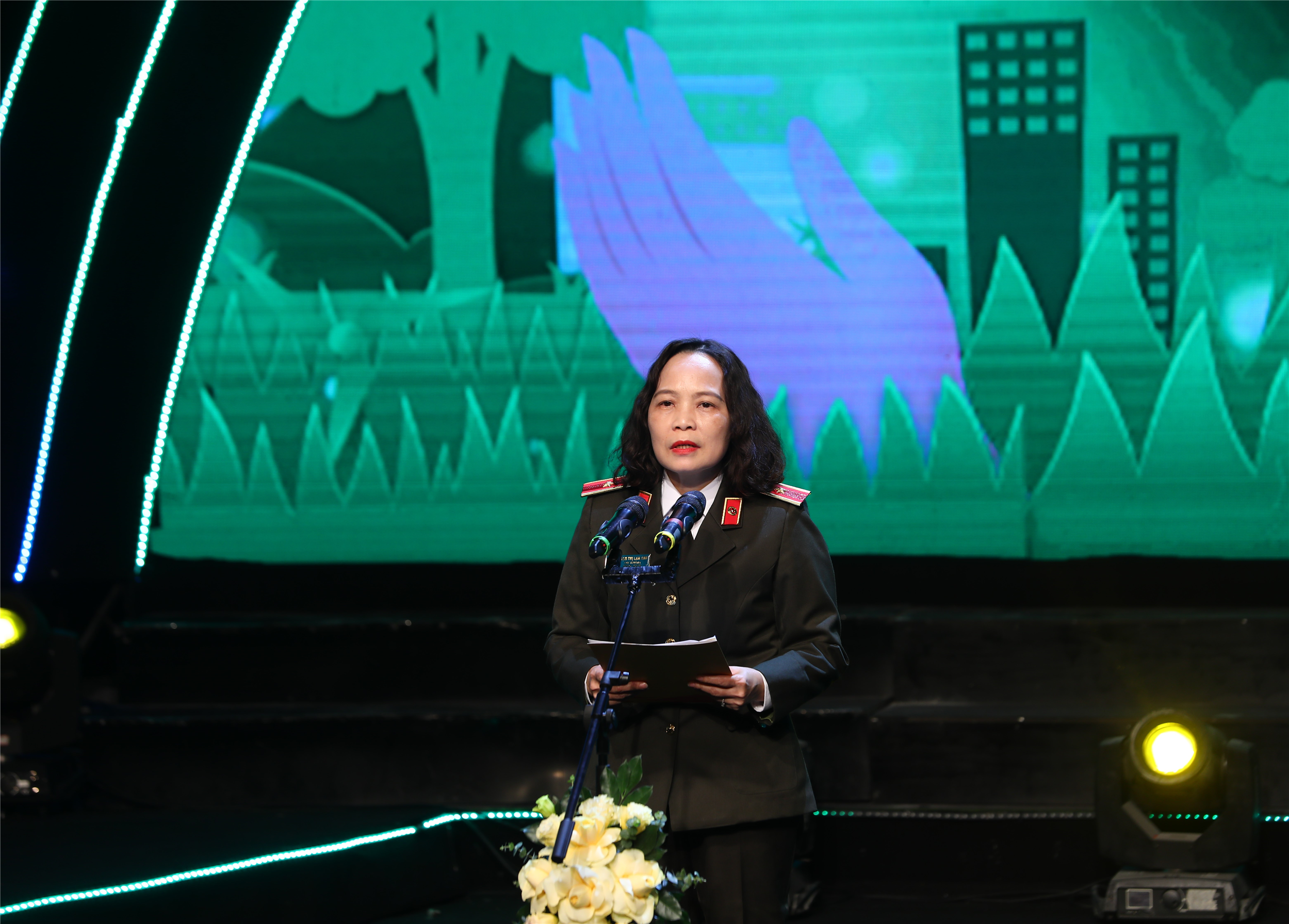 Báo cáo về công tác tổ chức cuộc thi, Thiếu tướng Phạm Thị Lan Anh nhấn mạnh: Biến đổi khí hậu, suy giảm hệ sinh thái tự nhiên, cạn kiệt tài nguyên thiên nhiên là những khủng hoảng kép mà nhân loại đang phải đối mặt. Để chuyển hóa thành công những thách thức từ các cuộc khủng hoảng này gây ra thành những cơ hội phát triển là trách nhiệm của các cấp, các ngành trong toàn xã hội. Bộ Công an luôn xác định rõ mục tiêu, vai trò và trách nhiệm trong công cuộc bảo vệ môi trường và ứng phó biến đối khí hậu, phát triển bền vững đất nước.